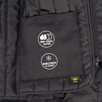 - Shelltech Classic : doublure thermique amovible ouatée avec bandes matelassées verticales piquées.