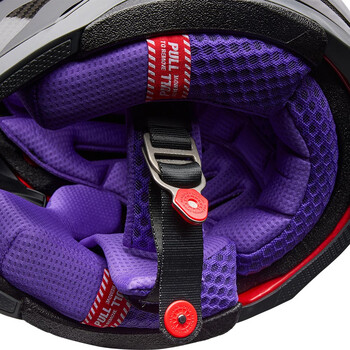 • Fermeture de la jugulaire par boucle double D.