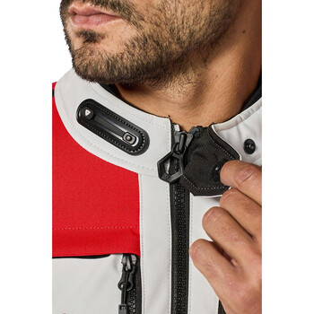 - Demi-zip de connexion permettant de raccorder la veste à un pantalon moto.